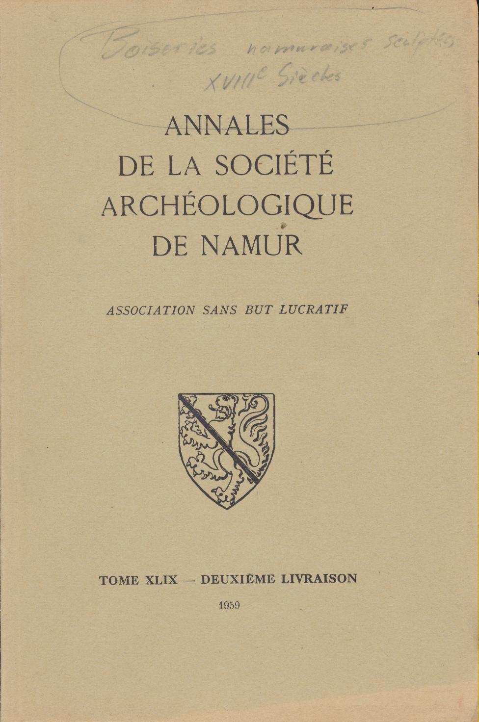 ANNALES DE LA SOCIÉTÉ ARCHÉOLOGIQUE DE NAMUR TOME QUARANTE-NEUVIÈME - DEUXIÈME LIVRAISON