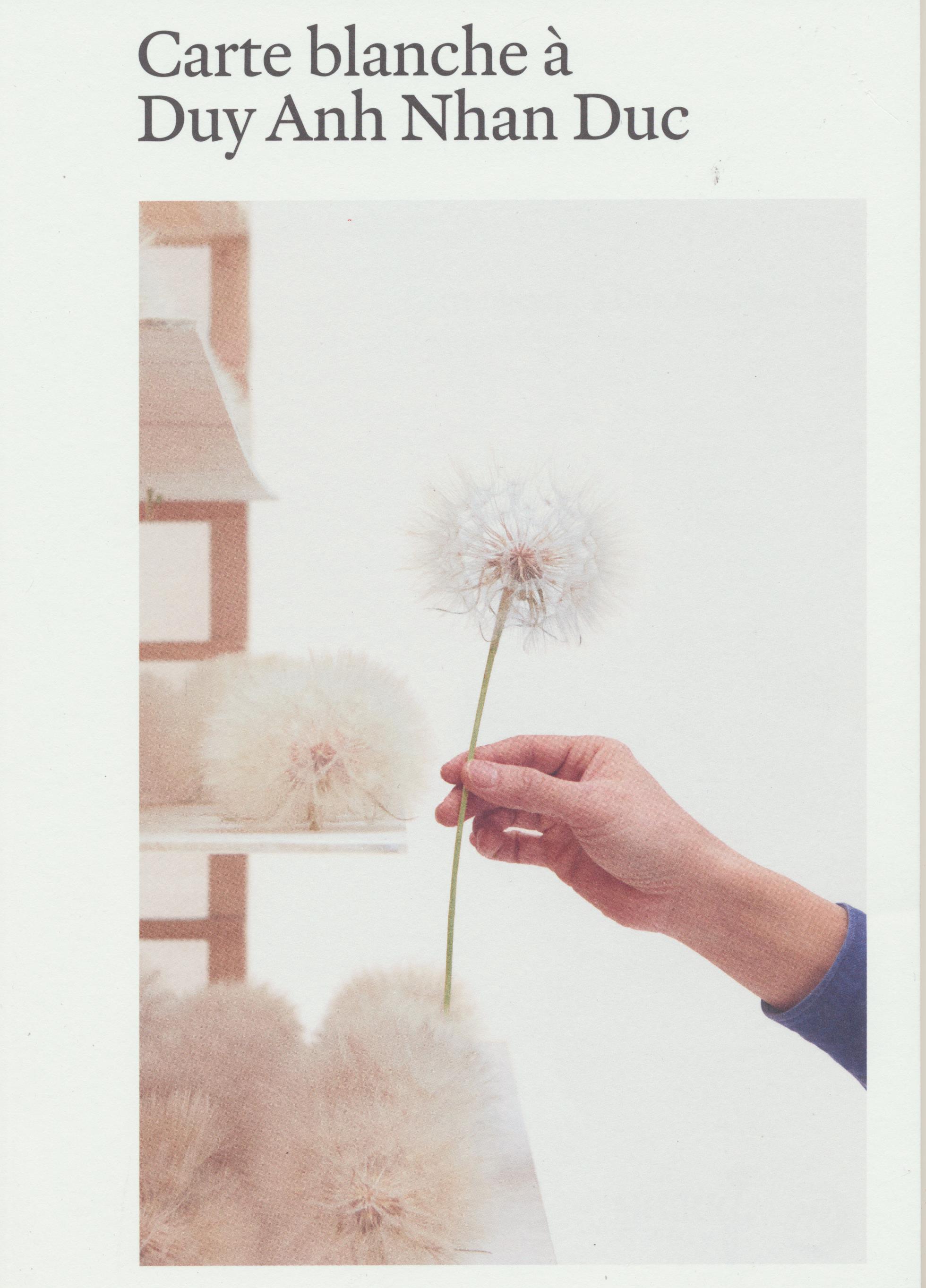 Livre neuf. Carte blanche à Duy Anh Nhan Duc. Catalogue de l'exoosition présentée au musée national des arts asiatiques, Paris (10 novembre-2021-7 février 2022). Plasticien du végétal, poète de l'éphémère, Duy Anh Nhan Duc, artiste franco-vietnamien né en 1983 à Hô Chi Minh-Ville et vivant à Paris, fait de la nature la matrice de ses oeuvres, créant des installations poétiques à partir de matières qui le fascinent.