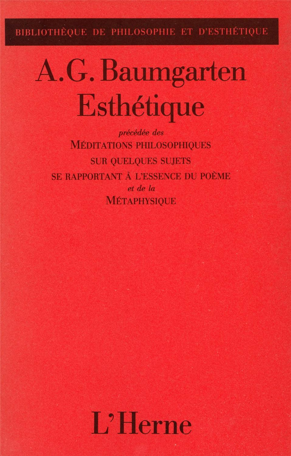 Le livre ESTHETIQUE, écrit par BAUMGARTEN A. G., édité par L'HERNE coute 23,30 €.
