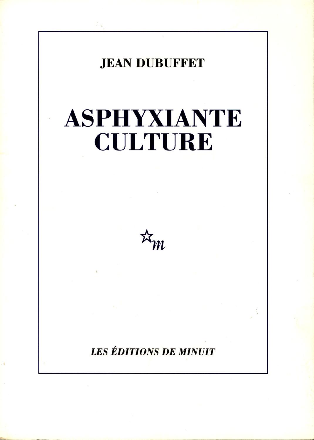 Le livre ASPHYXIANTE CULTURE, écrit par DUBUFFET JEAN, édité par MINUIT coute 14,00 €.