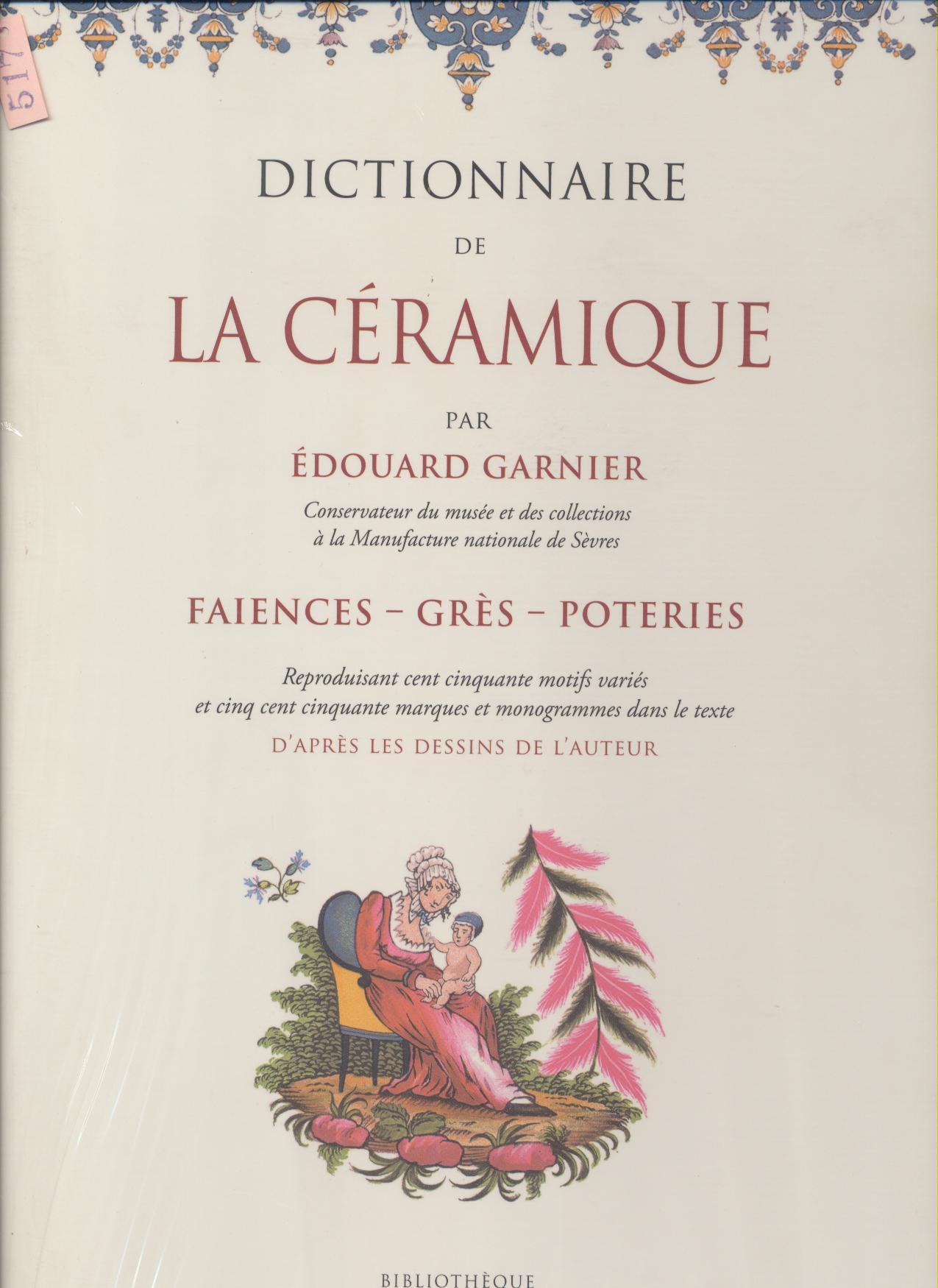 Livre neuf. Dictionnaire de la céramique : Faïences, grès, poteries. Avec ce bel ouvrage qui s'adressait surtout aux gens du monde, aux amateurs et aux collectionneurs, l'auteur avait cherché, d'une part, à indiquer d'une façon simple et précise les points qu'il est indispensable de connaître de l'histoire et de la technique de la céramique et, d'autre part, à faire ressortir les caractères distinctifs de chaque fabrication et les différences d'exécution qui existent entre des produits qui semblent être de la même provenance bien qu'ils soient sortis d'ateliers souvent très éloignés les uns des autres.