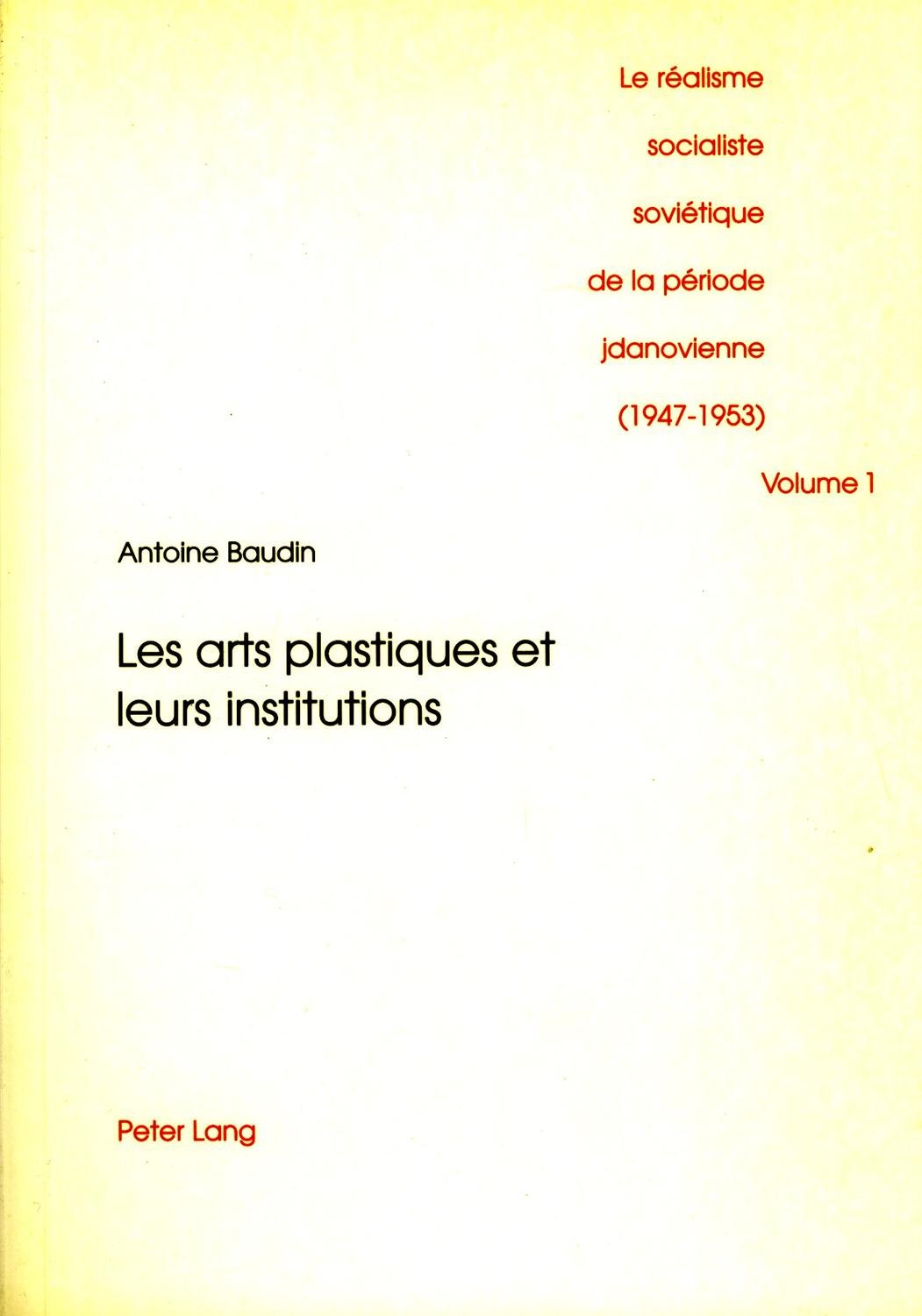 Volume 1: les arts plastiques et leurs institutions.
